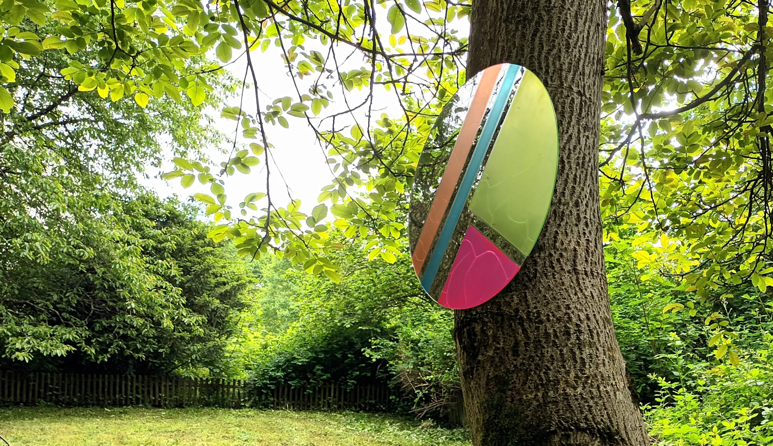 Farbigkeit und Licht – das Motto der Kunstroute 2024 greift die Kölner Künstlerin Lydia Oermann in mehrfacher Hinsicht mit ihren farbig und halbtransparent bedruckten Spiegeln auf. Sie hält der Natur auf dem „Hahn“ den künstlerischen Spiegel vor. Sie setzt mit Farbe und kreisrunder Form Kontrapunkte in der Natur. Neue Bilder entstehen und verändern sich durch die natürlichen Einflüsse oder die Perspektive der Betrachtung, und die Spiegel reflektieren das Licht.Die Künstlerin schreibt: „Spiegel sind Spielzeuge des Lichts und Werkzeuge der Wahrnehmung. Sie stehen für einen Perspektivwechsel und schaffen Illusionen. Ich finde den Kontrast zwischen der Natur und ihren Farben und den dort platzierten runden Spiegeln reizvoll und anregend. Es ist ein ästhetischer Eingriff in die Natur, der diese nicht zerstört, sondern neue Impulse mit sich bringt.“Das Kuratorenteam stellt fest: „Die Intervention von Lydia Oermann setzt eindrucksvoll das Motto der Kunstroute Kyllburg in diesem Jahr in Szene.“Die Künstlerin verbrachte ihre Jugend in Bitburg-Erdorf, kennt Kyllburg seit Kindestagen und arbeitete lange in Trier. Seit 7 Jahren lebt und arbeitet Oermann, die unter anderem Freie Kunst im Studio für Kunsterziehung studierte, in Köln.