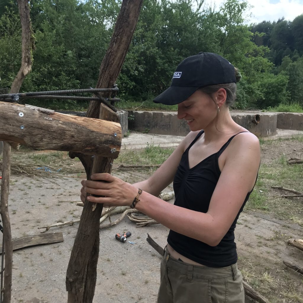 Ewa Dąbrowska wurde 1989 in Warschau geboren und schloss 2018 ihr Studium der Bildhauerei in Warschau mit “cum laude” ab. Sie arbeitet mit Installationen, traditionellen Skulpturen, Zeichnungen, Landart, aber auch mit Happenings, bei denen sie Musik und Skulptur in einem kreativen Prozess verbindet. Im Jahr 2019 baute sie Kroppemann, ein athletisches Wasserwesen aus Treibholz, das durch den Wald lief und die Herzen vieler Kyllburger gewann.