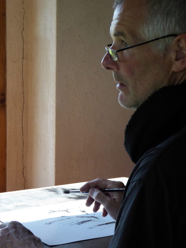 Nach der Arbeit mit schwerem Stein und anderem Material interessiert mich im Moment eher das Skizzenhafte. Es ist leicht und frei und nicht fertig … lässt der Fantasie Spielraum und fordert den Betrachter, den eigenen inneren Bildern und Prozessen zu folgen und sich (damit) auseinanderzusetzen.