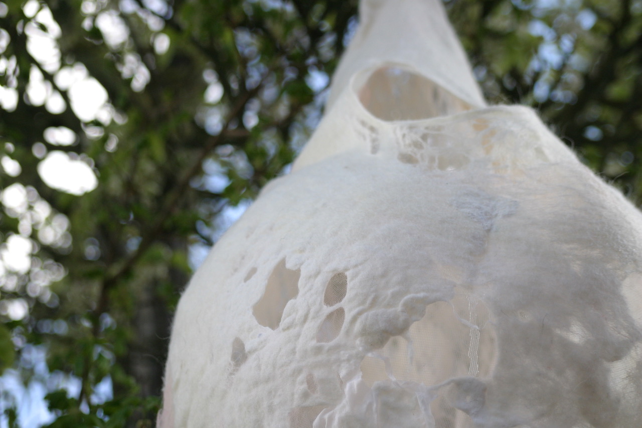 Kokons, groß, leer, halb zerrissen, hängend an Bäumen. Die Installation bezieht sich darauf, „dass Zerstörung Teil des Wachstums ist.“ Der Schmetterling verlässt die Puppe, das Kind verlässt die Gebärmutter, der Junge verlässt das Haus der Mutter, das Küken verlässt das Ei… Alle natürlichen Prozesse sind Teil des großen Lebenszyklus, schmerzhaft, aber unvermeidlich.“